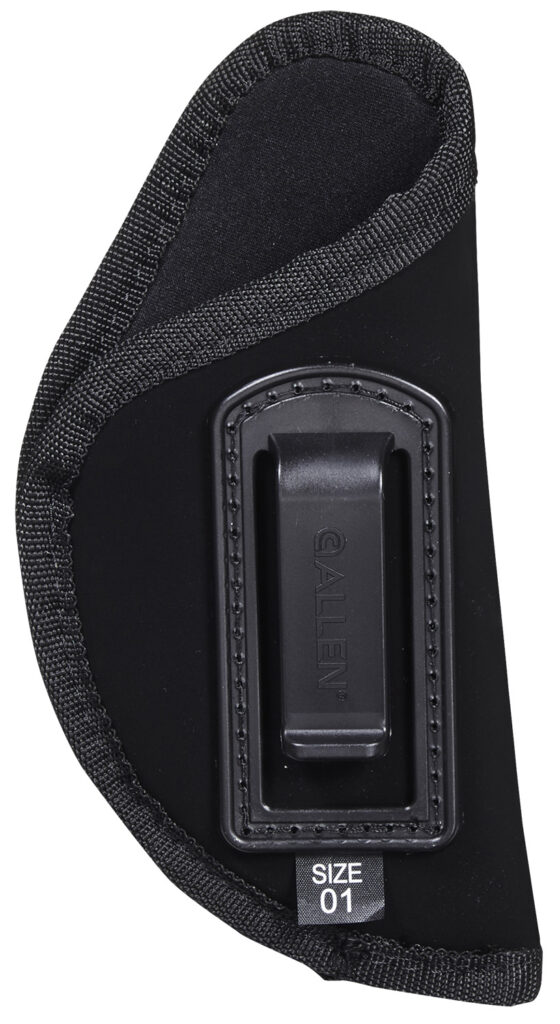 The Allen Company Inside-The-Pant Conceal Carry Gun Holster provides you with a thin profile holster, with soft exterior fabric, for easy and comfortable concealment. Snag-proof, smooth lining helps you with faster draw speeds and is designed for right-handed shooters. Comfort meets sturdy construction makes this inside-the-pant (ITP) solution perfect for your conceal carry needs while a molded belt clip attaches easily, fitting belts up to 2-inches wide. This model is compatible with Sig Sauer P365; 3 to 4-inch barrel, medium frame semi-auto handguns and other makes/models of similar size.