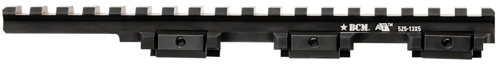 The A/T Optic Riser 525-13×5 is approximately 7-1/4 long and is intended to be used similarly to the 525-10×5 but offers 3 additional recoil slots for more flexibility. This riser has 13 recoil slots on the main body, and 5 on the cantilever section for a total of 18 slots (19 lugs). Ideal for layering magnifiers and other enhancement systems with red dot optics, BCM A/T Risers offer the potential for a more capable platform that can improve threat identification in complex settings. Optimized for close combat ranges, the BCM A/T Riser creates a platform that raises the centerline of attached optics and magnifiers by approximately 1/2 inch. This additional height enhances the trained end users situational awareness, and further, makes it possible for them to take better aimed shots if they are using the optic in conjunction with night vision or other PPE systems. Interfacing with the upper receiver using the same low-profile A/T system used in our Optic Mounts, not only reduces snag hazards but makes the entire length of rail usable for either bolt-on or QD attachments. Further, the low profile A/T interface enables mounting accessories with Mil-Std 1913 attachments anywhere on the stalk of the riser platform allowing end users to fine tune placement of optics, magnifiers, and other accessories. Each A/T Riser is machined from aircraft aluminum alloy, hard coat anodized per Mil-A-8625F. The steel alloy clamp is hardened with Nitride coating for maximum strength. Finally, each Riser features multiple integral recoil lugs to mitigate recoil and counter recoil to preserve your zero and ensure no fail shots are placed where intended by the trained rifleman. A/T (Angled Torque) mounts employ angled torque through a patented* clamp which applies triangulating force to create a stronger and more reliable lock up of the mount onto the end users rail.