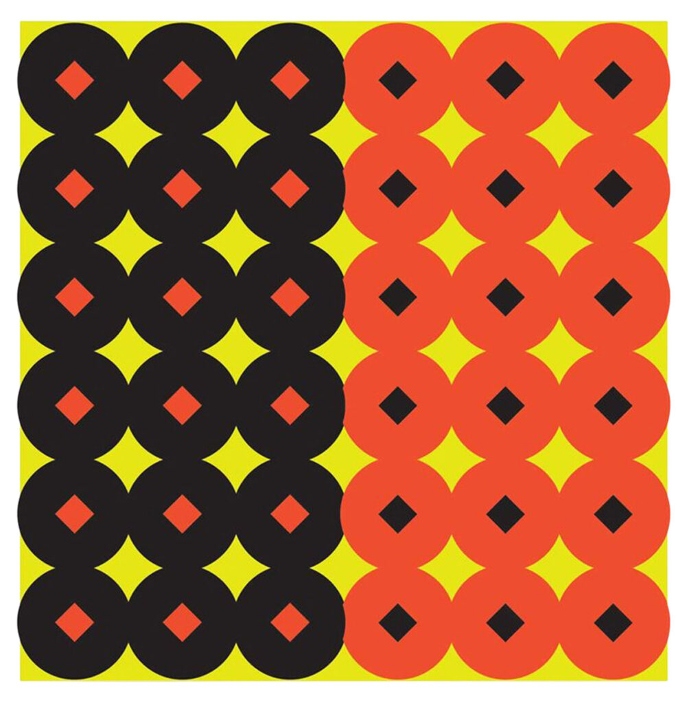 Birchwood’s Shoot-N-C Self-adhesive 1″ reactive targets with diamond center is perfect for any caliber firearm and can be used on coordination with other targets for multiple aiming points.