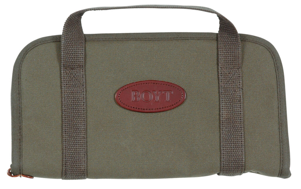 Boyt’s Rectangular Pistol Rug features a waxed canvas shell with non-compressible cotton batten padding and flannel lining.