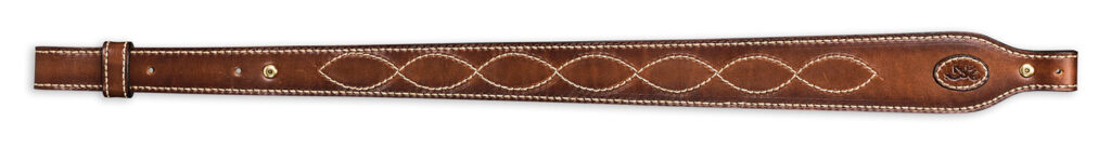 The Heritage Sling is made from hard-stained Latigo leather, and features suede backing, contrasting figure-eight stitching, and a Buckmark patch.