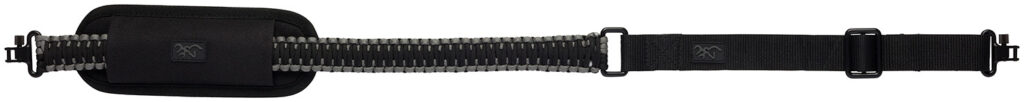Constructed of durable webbing and braided 550 parachute riser cord, comfortable shoulder pad sleeve, metal sling swivels included.