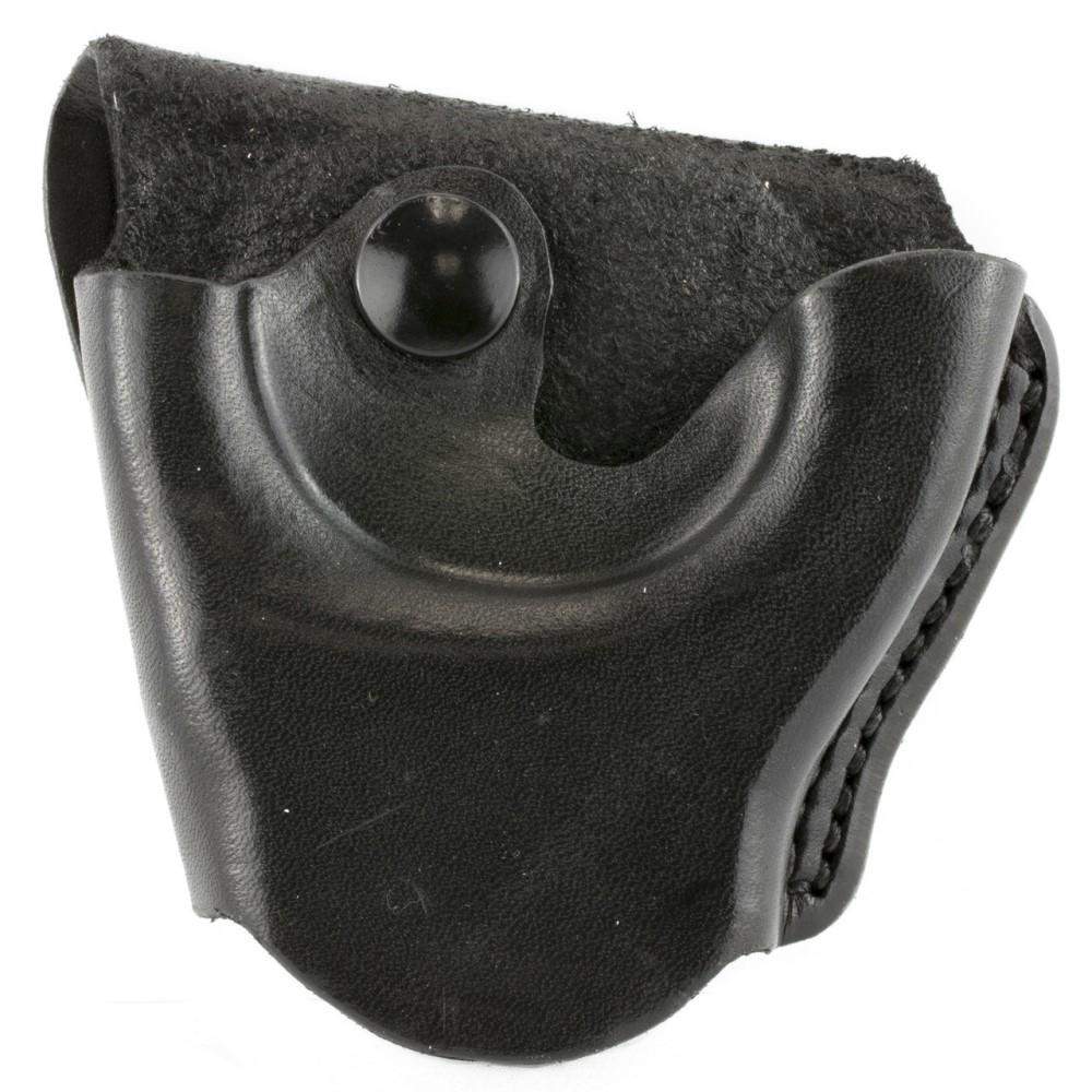 The A04 features a snap on belt design. A snap fastener holds handcuffs in place. It accommodates belts up to 1 3/4" wide.