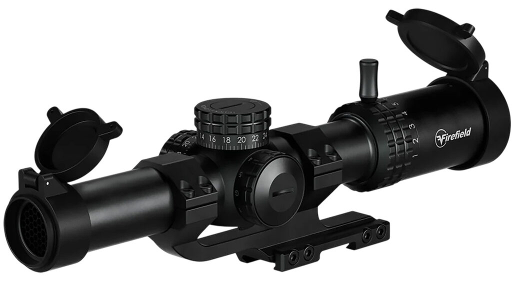 The Rapidstrike 1-10×24 scope offers the longest range variable magnification in the Rapidstrike series, making it perfect for shooters seeking both close-range agility and long-range accuracy. Featuring precise MOA adjustments, the illuminated second focal plane CR1 reticle is designed for quick target acquisition and efficient close-range engagements. Powered by a CR2032 battery, the reticle boasts a maximum battery life of 260 hours, ensuring extended illumination during low-light hunting trips. Built to endure the toughest conditions, the Rapidstrike is rated to withstand the recoil of a .338 Lapua Magnum, making it suitable for any AR platform while feeling right at home on any large caliber bolt-action or semi-automatic rifles. Its aircraft-grade aluminum body is nitrogen-filled to prevent fogging and is shockproof, guaranteeing durability. The included honeycomb filter eliminates lens reflections, keeping your position concealed and enhancing stealth needed for the hunt or field operations. Additionally, the included cantilever arm allows for quick magnification adjustments, effortlessly adapting to any shooting scenario. Includes lens cloth, T10 Torx wrench, T15 Torx wrench, CR2032 battery, label mounting screws kit and rubber shim.