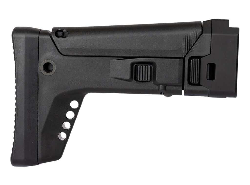 The Global Ordnance UFS 1913 Universal Folding Stock in Black is built for versatility and strength. Designed to mount securely to any 1913 Picatinny rail back plate, this stock has been tested across a wide range of firearms for a reliable universal fit. Its anodized aluminum adapter features a multi-adjustable set screw system, allowing shooters to fine-tune positioning for their preferred setup. Made from durable polymer, the stock offers seven length-of-pull adjustments, an adjustable cheek riser, and left-side folding for compact storage. A built-in battery compartment with a rubber cap keeps spare batteries or small parts secure and protected.