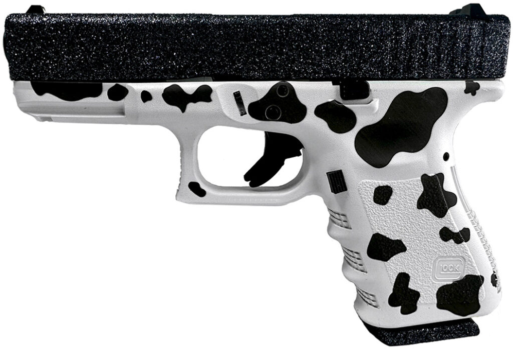 GlitterGunz is a durable sparkling coating applied utilizing specialized equipment and a patent-pending process. The slight tactile texture of the coating provides the user with a non-slip grip making it easier to operate a semiauto handgun’s slide.