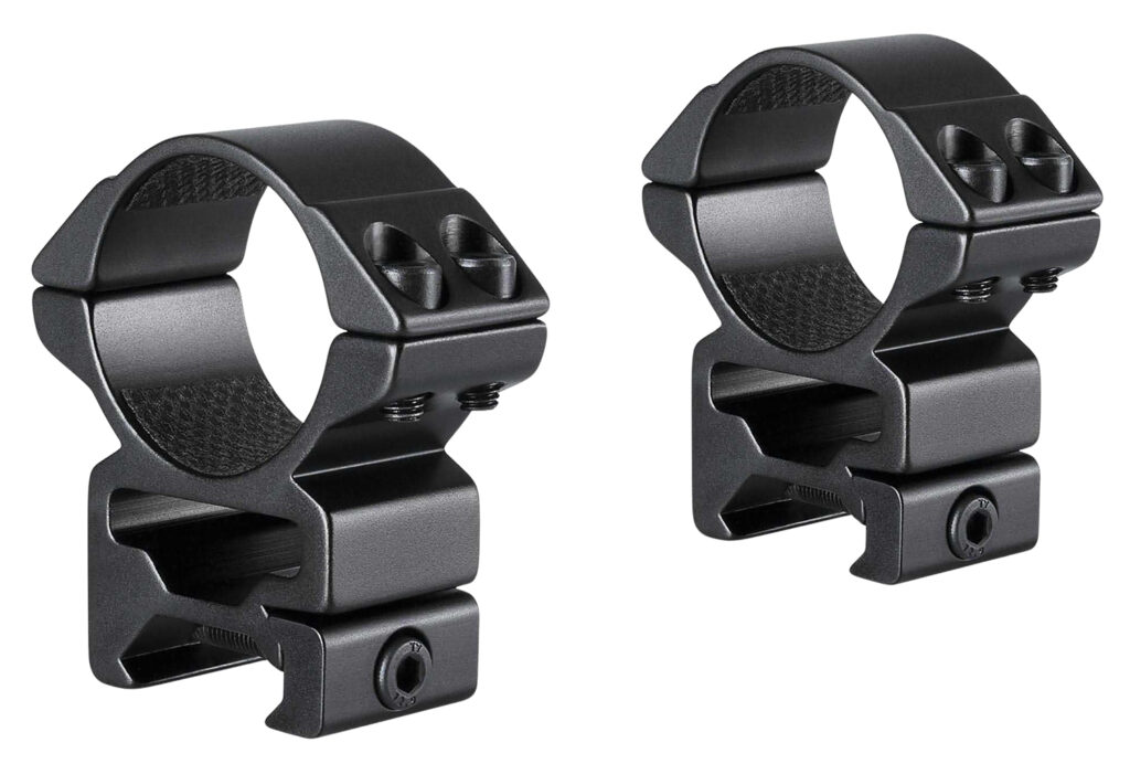 Precision engineered from high grade aluminum with rounded edges prevent scope damage. Features Weaver rail w/crossbar. Includes double hex screws.