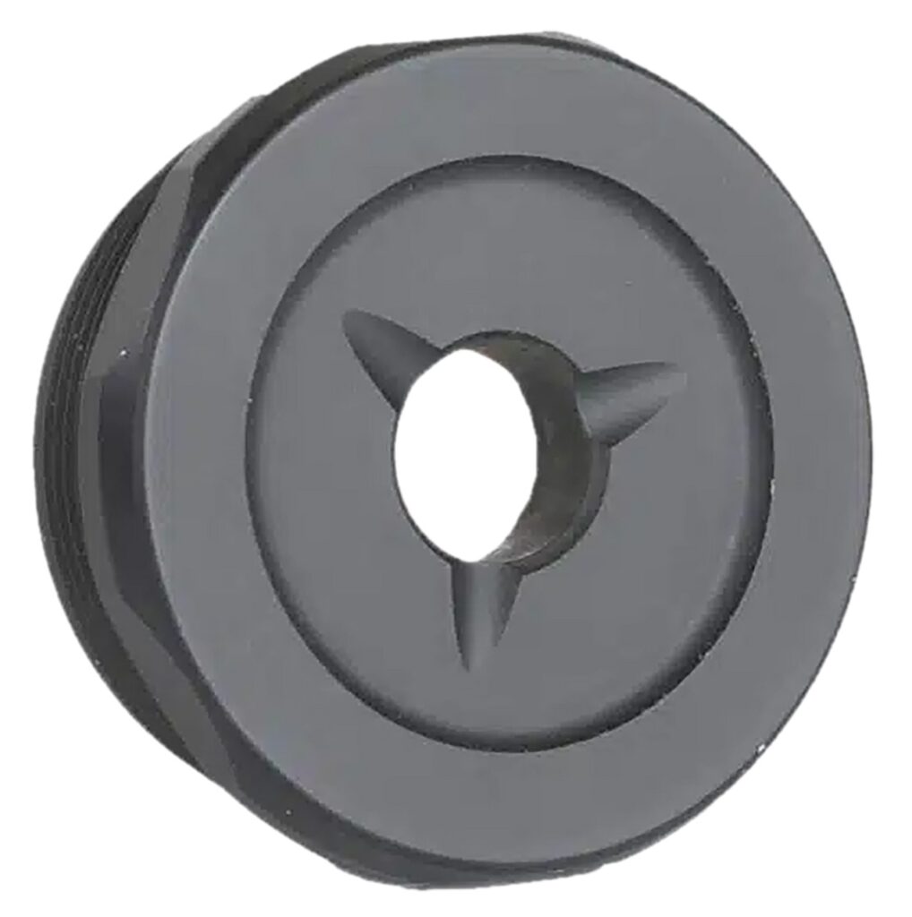 The shortest End Cap we offer, the Flash Reducer is the standard, flat End Cap for most JK Armament suppressors. Three small, concave channels provide good looks and some flash reduction.
