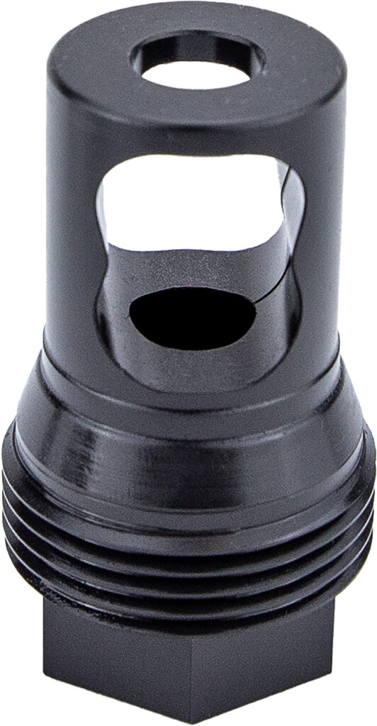 The KGM R556A1 is a compact and capable suppressor designed to meet and exceed SOCOM durability testing, enhance rifle accuracy, provide superior repeatability, reduce sound signature, and have minimal impact on a rifles operating system. Being constructed of nickel alloy and stainless steel, the R556A1 will withstand significant round counts over a long service life. This suppressor excels on any semi- or fully automatic carbine, providing very minimal backpressure. This is achieved by efficiently managing gas flow throughout the suppressor to vent forward, which also reduces toxic gases going back to the shooter. By also redirecting the gas flow away from the bullets flight path, the R556A1 enhances the precision of the host rifle. This engineered gas flow within the suppressor serves to significantly reduce recoil and enable greater shooting performance.