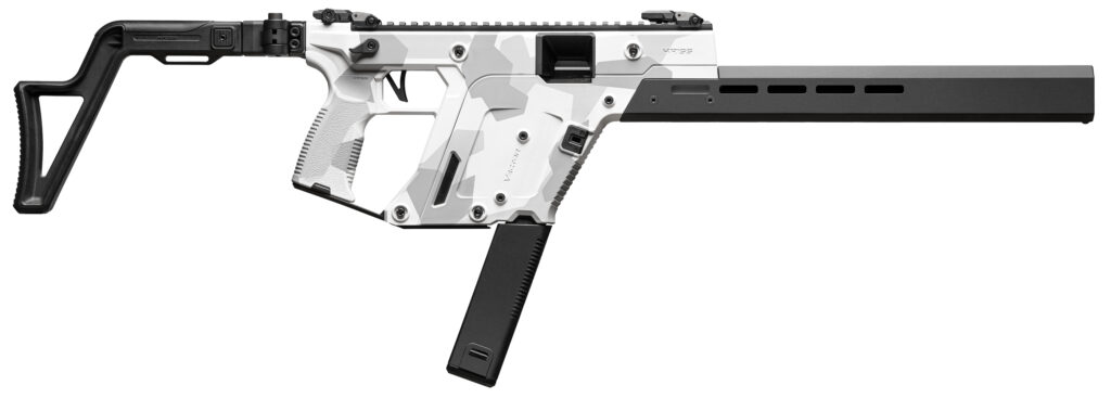 Experience the most versatile and competition-ready member of the Vector family. Tailored for recreational shooting and pistol-caliber carbine competition the KRISS Vector Gen 3 CRB delivers exceptional performance with a compliant 16 rifle-length barrel making it the most accessible model in the lineup. Its fully reimagined Gen 3 upper and lower housings offer enhanced ergonomics improved adaptability and greater customization for every shooting style. – A newly refreshed barrel shroud featuring integrated M-LOK® mounting points expands accessory options and elevates the CRB’s modern performance-driven design. – Compatible with full-size Glock® magazines the CRB provides intuitive handling and seamless magazine interchangeability for users familiar with Glock-pattern systems. – Caliber 10mm – Model Vector CRB – Action Semi-Automatic – Operating System Closed Bolt Delayed Blowback – Barrel Length 16.0 in / 406.4 mm – Overall Length Collapsed 34.9 in / 887.5 mm – Overall Length Extended 36.9 in / 937.5 mm – Magazine(s) included (1) 33 Rounds – Color Arctic Delta CERAKOTE® Coating – Weight 7.7 lbs / 3.5 kg – Barrel Material 4140 Chrome Moly – Barrel Finish Black Nitride (QPQ) – Barrel Threading 9/16×24 RH – Trigger Type Pivoting Single Stage – Stock KRISS Ambidextrous Telescopic Folding Stock – WHAT’S IN THE BOX – (1) KRISS Vector Firearm – (1) Magazine – (1) Cleaning Kit – (1) Cable Lock – (1) User Manual – (1) Warranty Card