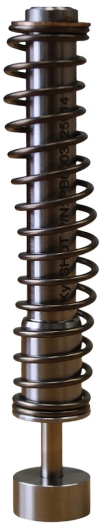 The KynSHOT Hydraulic Guide Rod is designed and optimized to be a drop-in replacement for all guide rod assemblies used for the Glock 19 slide or alike, without having to change the configuration of current firearm. The innovative design, uses a unique damping configuration to allow the slide to cycle properly, controlling the overall movement and speed of the slide. The KynSHOT guide rod can be used with all different ammunition scenarios. The PB6003 reduces the total recoil motion over 70%. The test data shows that when using the KynSHOT PB6003, the recovery time per shot is less than 0.5 seconds, whereas other guide rod systems recovery time show a 1.5+ second recovery time or more