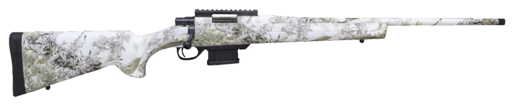 22 Blue barrel threaded (Kings Snow Camo Dip) – HTI Synthetic Stock Kings Snow Camo Dip – Suppressor ready ( ½-28 ) – Scope rail installed (Black) 20moa – Weight w/rail installed 6lbs 1oz – Mini Action 12% shorter length of pull vs the short aciton. – Reliable M-16 Style extractor/ejector – Detachable Mag – 3 Position Safety – 2 Stage Match Trigger – Tool-less Firing Pin removal – Machined Receiver and Forged bolt – Large Integral front barrel lug – Howa Lifetime Warranty – Sub MOA Guarantee – Mini Action Rate of Twist 1-9.5