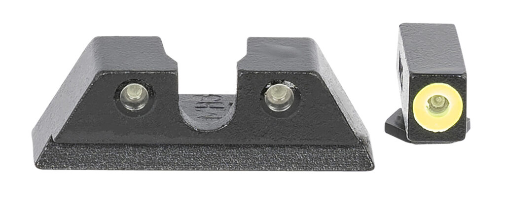 Meprolight Hyper-Bright fixed pistol sight features an extremely bright contrasting colored ring front sight. The tritium is illuminated green to provide low-light and nighttime aiming capabilities. The contrast in colors of the two components helps the shooter focus on the front sight quicker, which is critical in defensive and competitive shooting. Front Sight Length: 0.50″. Front Sight Width: 0.14″. Front Sight Height: 0.23″. Rear Sight Length: 0.28″. Rear Sight Width: 0.83″. Rear Sight Height: 0.28″.