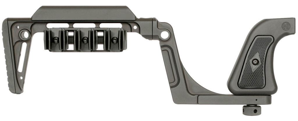 The Bounty Hunter Series is a groundbreaking patent pending new system that introduces an entirely new approach to how revolvers can be configured and experienced. Designed to provide additional points of contact increased stability enhanced comfort and simplified takedown for storage and transport it reimagines the revolver as a more adaptable and customizable platform. – Compatibility Only for use with Ruger® Super Blackhawk Revolvers – Specifications – Available as a stock or arm brace designed for enhanced stability and control across small and large revolver calibers – Constructed from Hard Coat Anodized 6061 Aluminum for the grip stock and Z-beam ensuring durability and lightweight performance – Features polymer textured grip panels a polymer cheek piece and a rubber butt pad for superior comfort and recoil management on the stock version – Properly aligned height for seamless use with iron sights and red dot mounts – Multiple points of contact improve shooting accuracy and control – Ambidextrous design for right or left-handed shooters – Includes a shell plate holder with 3 Midwest Industries Universal Shell Holders compatible with any revolver caliber and allowing 6 rounds of ammunition to be stored – Hardened steel takedown thumbscrew enables easy disassembly for compact storage – Equipped with 5 quick-detach sling sockets for customizable sling configurations – Designed with sufficient room for easy firearm handling and operation – Patent-pending Design – Made in the USA – Lifetime Warranty – Weight: 1.75lbs