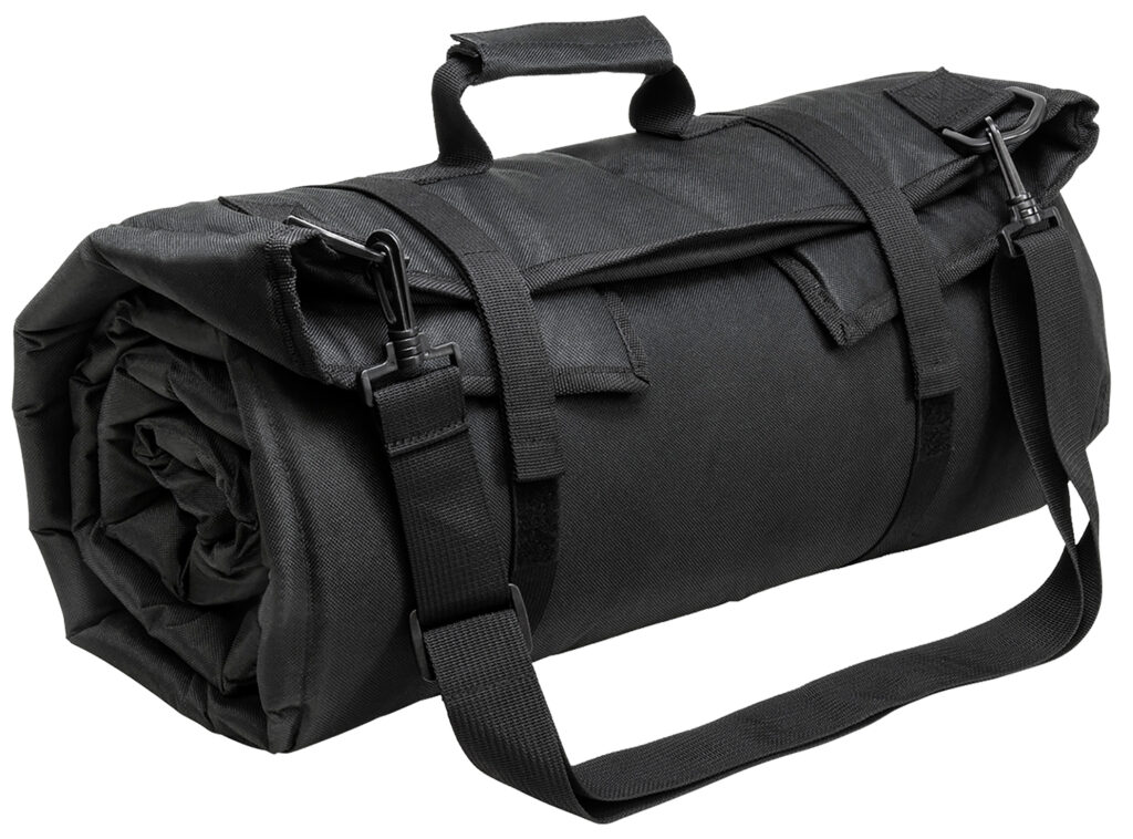 NcStar’s Shooting Mat can be used for multiple purposes. Made with a water and chemical resistant PVC material, the adjustable shoulder strap serves double duty to help secure your firearm’s bipod while the slip resistant panels helps keep your elbows and knees from losing traction. The .30″ of padding makes shooting from the prone position on the ground more comfortable. Unrolled it measures 69″L x 35″ and rolls up into a compact size of 19.5″W x 8.5″H with two hook and loop straps to secure it. This model has a black finish.