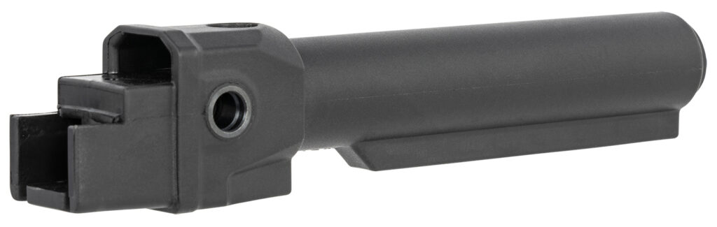 The easy and simple to install Mil-Spec stock tube mount, is non-folding adapter for AK variants. It mounts onto AKM pattern stamped receivers with square cut flat rear receiver section. The tube allows a variety of AR style Mil-Spec collapsible buttstocks to be installed onto an AK variant. It features QD sling mounts on both sides of the stock adapter. The stock tube is hollow with a rubber end plug and it can be used to store parts and cleaning tools.