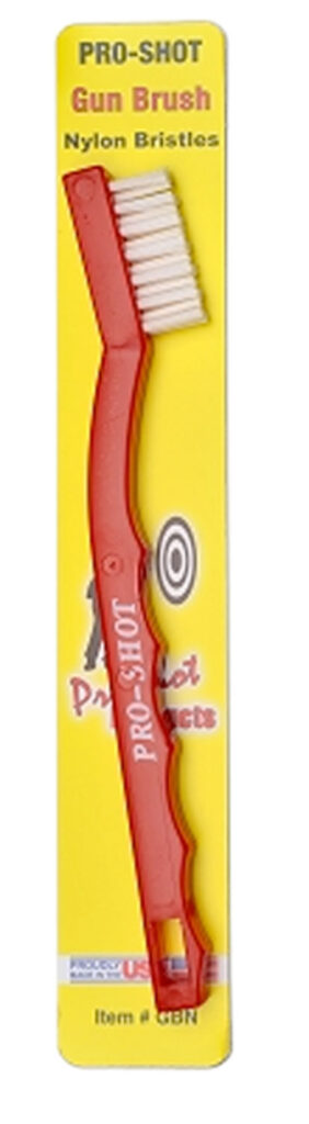 The Pro-Shot Nylon Bristle gun brush features a durable polymer handle with a thick fill of stiff nylon bristles to ensure that your gun gets clean. The nylon bristles are safe for your firearm while removing nasty dirt, grime and fouling.