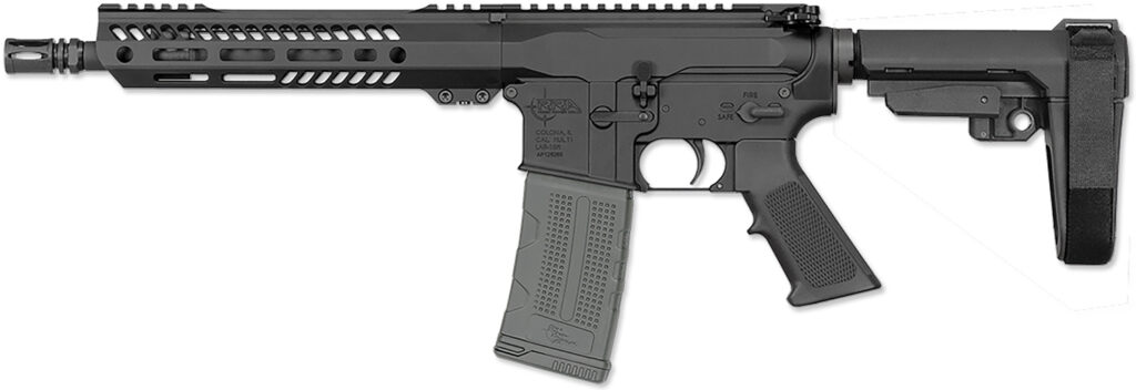 The Rock River Arms RRAGE features a forged LAR-15 lower receiver; extruded A4w/port door. no forward assist upper receiver; threaded barrel; A2 flash hider; SB Tactical SBA3 adjustable stabilizing arm brace and a lightweight aluminum 9.50″ free floating handguard. Includes 30rd magazine and manual.