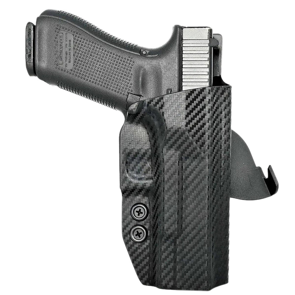 The Hand Molded, Adjustable Retention & Cant (-5 to +20) Paddle OWB KYDEX Holsters. Every one of these holsters is Custom made by hand, just for you the moment it is ordered. The minimalist outside the waistband KYDEX holsters hold weapons securely while remaining extremely lightweight and durable. They are the perfect all around holster for every day OWB carry.