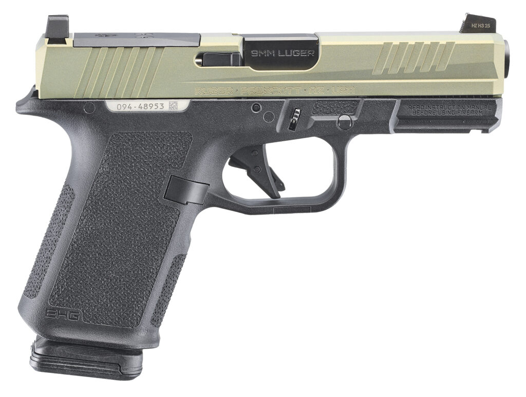 The Ruger RXM features including Magpul’s 3/4 scale TSP texture for a secure grip without discomfort or damage to clothing during concealed carry and textured indexing pads for consistent finger/thumb placement; a low-profile, flared magazine well for quick and easy magazine insertion; a trigger guard undercut and beavertail that promotes a high grip for better control; a magazine release scallop for easy access; a universal-pattern accessory rail for use with a variety of lights and lasers; 1/2″-28 threaded barrel with factory-installed thread protector allows for the attachment of popular muzzle accessories. Most major components designed to operate in Gen 3-type pistols and are compatible with many off-the-shelf holsters and accessories. Slide allows for direct optic mounting of RMR, Delta Point Pro (DPP), and RMSc pattern optics. Co-witness-height steel sights feature a tritium night front sight, providing an excellent sight picture, with or without an optic installed. Includes two Magpul PMAG 15 GL9 15rd magazines and co-branded plastic carry case.