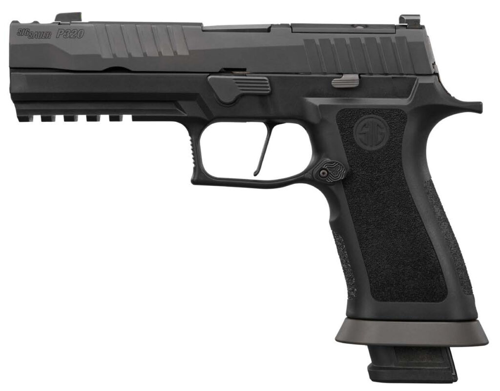 Signature pistol of the OFF-DUTY Program – Two Port Slide Integrated Expansion Chamber for recoil mitigation – Matte Black DLC slide finish with enhanced serrations – Flat blade trigger with Springer Precision magazine catch – Full length X-Series Polymer grip module with integrated grip weight and magwell – Hogue Heavy Grit Wrapter Grip (Included in packaging) – XRay3 Day/Night Sights – (3) 21rd Magazines – CALIBER 9MM – FRAME MATERIAL STAINLESS STEEL – GRIP MODULE BLACK POLYMER FULL SIZE XSERIES – SLIDE MATERIAL STAINLESS STEEL – SLIDE FINISH MATTE BLACK DLC – MAGAZINE CAPACITY 21 ROUNDS – SIGHTS XRAY3 DAY/NIGHT SIGHTS – TRIGGER STRIKER FIRED W/ XSERIES FLAT BLADE TRIGGER – OVERALL LENGTH 8.3 in – OVERALL HEIGHT 5.7 in – OVERALL WIDTH 1.6 in – BARREL LENGTH 3.9 in – WEIGHT W/MAGAZINE 33.2 oz