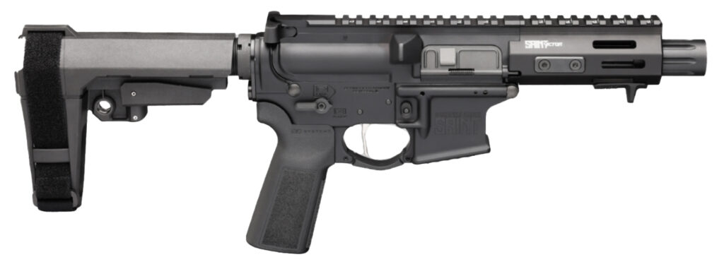 The SAINT® Victor 9mm Pistol delivers rugged performance in a compact hard-hitting package. Featuring a 5.5 barrel full-length top Picatinny rail and SA Muzzle Drum it’s built for maneuverability in tight spaces. Its direct blowback system ensures rock-solid reliability feeding from durable 10-round Colt®-pattern magazines. Outfitted with an SB Tactical SB-A3 brace for enhanced stability this pistol variant is engineered for those who demand SAINT performance in a compact form. – Caliber 9mm – Color Black – Barrel 5.5 CMV Melonite® 1:10 – Upper Receiver Forged 7075 T6 Aluminum Type III Hardcoat Anodized – Lower Receiver Forged 7075 T6 Aluminum Type III Hardcoat Anodized Accu-Tite Tension System – Bolt Carrier Group 9mm Blowback – Handguard Aluminum Free Float w/ SA Locking Tabs M-Lok – Pistol Brace SB Tactical SBA3 – Trigger Nickel Boron Coated Flat – Muzzle Device SA Muzzle Drum – Receiver Extension 3-Position Adjustable – Receiver End Plate QD – Charging Handle Standard – Safety Switch 45-degree Short-Throw Ambidextrous – Trigger Guard B5 Systems Polymer – Grip B5 Systems Type 23 P-Grip – Magazines (1) 10-Round – Weight 5 lbs 12 oz – Length 20-22.5