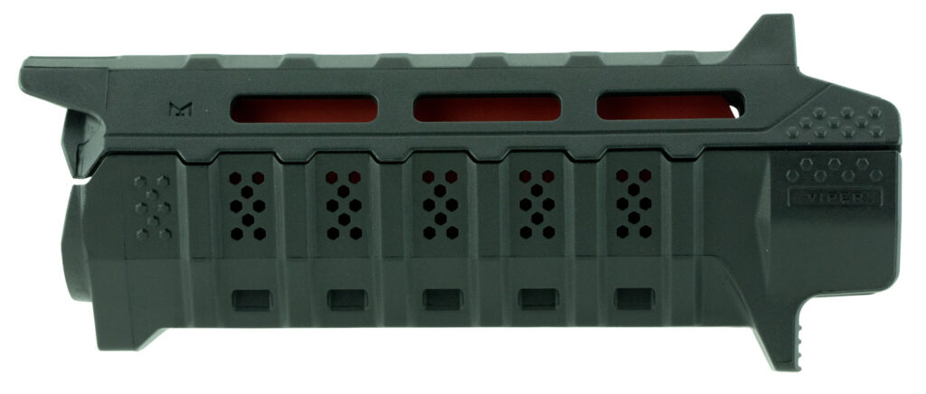 Strike Industries carbine length handguard is a great upgrade to those looking for a solid, slim bottom drop-in handguard with aggressive styling. The handguard, made of impact resistant nylon fiber-reinforced injection-molded polymer, features aggressive gripping options, top and bottom hand stops and the M-Lok rail system with plenty of real estate to mount your accessories.