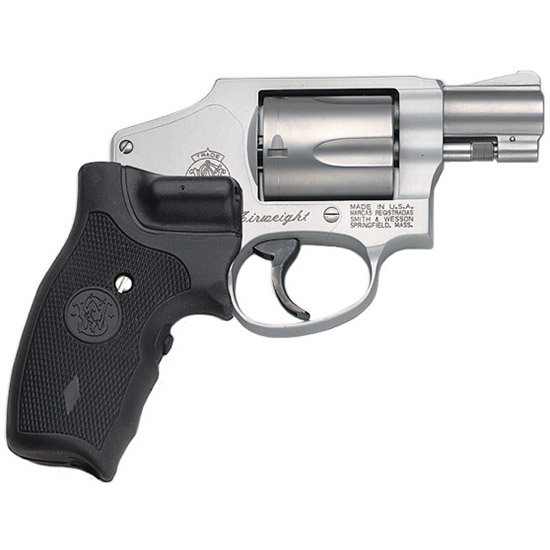 Action: DAO – Caliber: .38 S&W Special +P – Capacity: 5 – Material: Alloy/Steel – Grip: Crimson Trace Lasergrip – Finish: Stainless – Sights: Integral / Fixed – Barrel Length: 1.875 – Overall Length: 6.3 – Weight: 15.3 oz – The Smith & Wesson J-Frame has become the most popular small frame personal defense revolver on the market. With decades of reliable performance to its credit the J-frame line offers models capable of firing .22 LR .22 Magnum® .38 S&W Special and the more powerful .357 Magnum® loads. Smith & Wesson offers these revolvers from our production M&P Pro Series and Classics lines in three diverse hammer designs; internal exposed and shrouded.