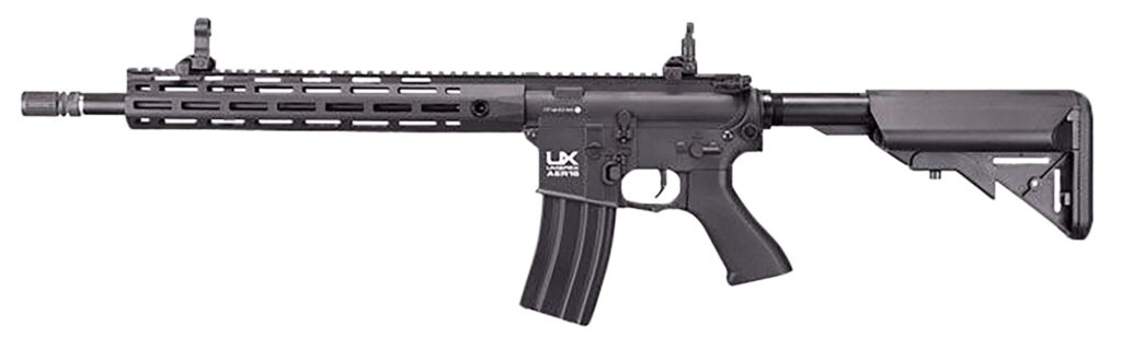 Modern times require modern solutions. CO2 and full-auto airguns don’t always get along. The solution? Electricity. With the Uamrex AER16 we have taken a page from the airsoft community and introduced electric power to the .177 caliber BB platform. The AER16 is powered by an 11.1v tri-panel LiPo battery and can be shot in single action mode or full-auto mode. With 55 rounds on tap in the magazine, an adjustable stock, M-LOK slot equipped hand guard, flip-up iron sight and full length top pic rail, the AER16 is the hot ticket for BB carbine fun in the 21st century.