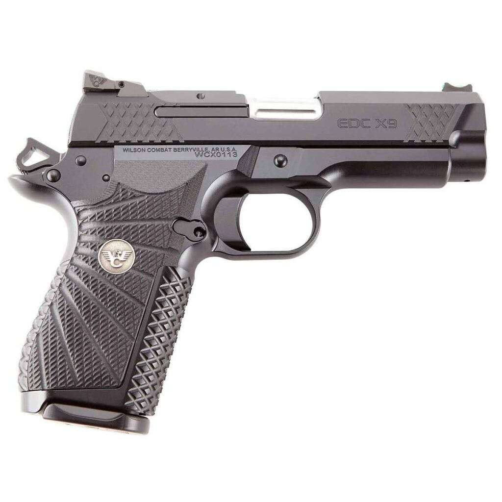 Wilson Combat EDC X9 9mm Luger 4in Black DLC Pistol – 15+1 Rounds – Wilson Combat has redefined the defensive handgun with the EDC X9 a modern hybrid of our EDC 9 1911 slide assembly mated with the all new high-capacity X-frame. This groundbreaking design combines the accuracy ergonomics and trigger pull of the classic 1911 design with enhanced reliability and concealable high capacity performance. The ergonomic design of the X-frame in conjunction with your choice of small or large back strap and small medium or long trigger pad can be tailored to fit all hand sizes comfortably. The EDC X9 front and back strap are machined with the Wilson Combat X-Tac tread pattern that provides a tactile but nonabrasive grip in all shooting conditions. The EDC X9 will fit the majority of holsters on the market designed for 4in or 4.25in 1911 pistols and is offered with or without an accessory rail.